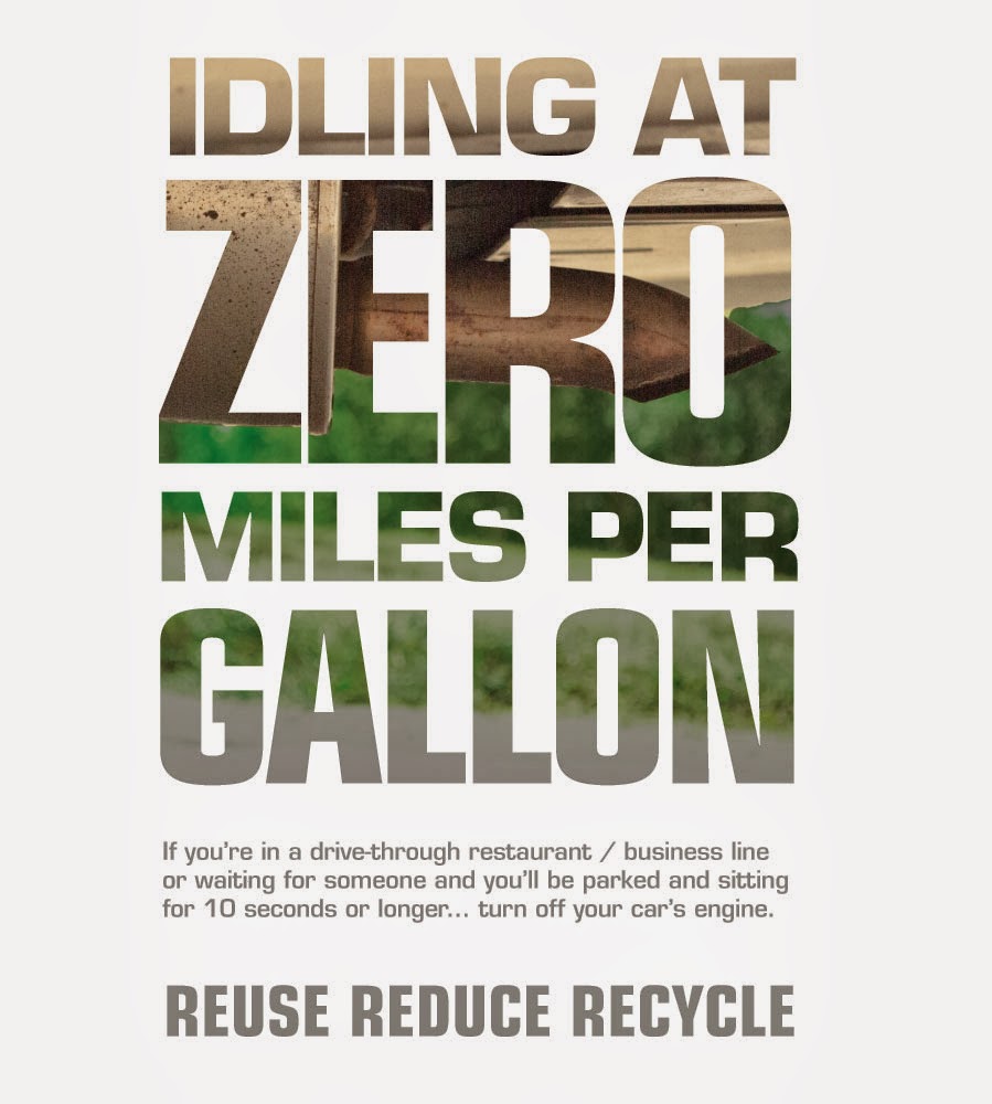 I am quite enjoying the poster that you have designed so far. I enjoy the type faces that you have chosen and think they're working well with the image. I do feel the big yellow type feels a little bit cramped. It also might be nice to try a color that feels a little bit more pollution-y than yellow? just a thought. Also, I'm not entirely sure "idling at zero miles per gallon" makes sense? It sounds like really bad gas mileage. I think something more along the lines of "idling at zero gallons per second" might get the point across better.